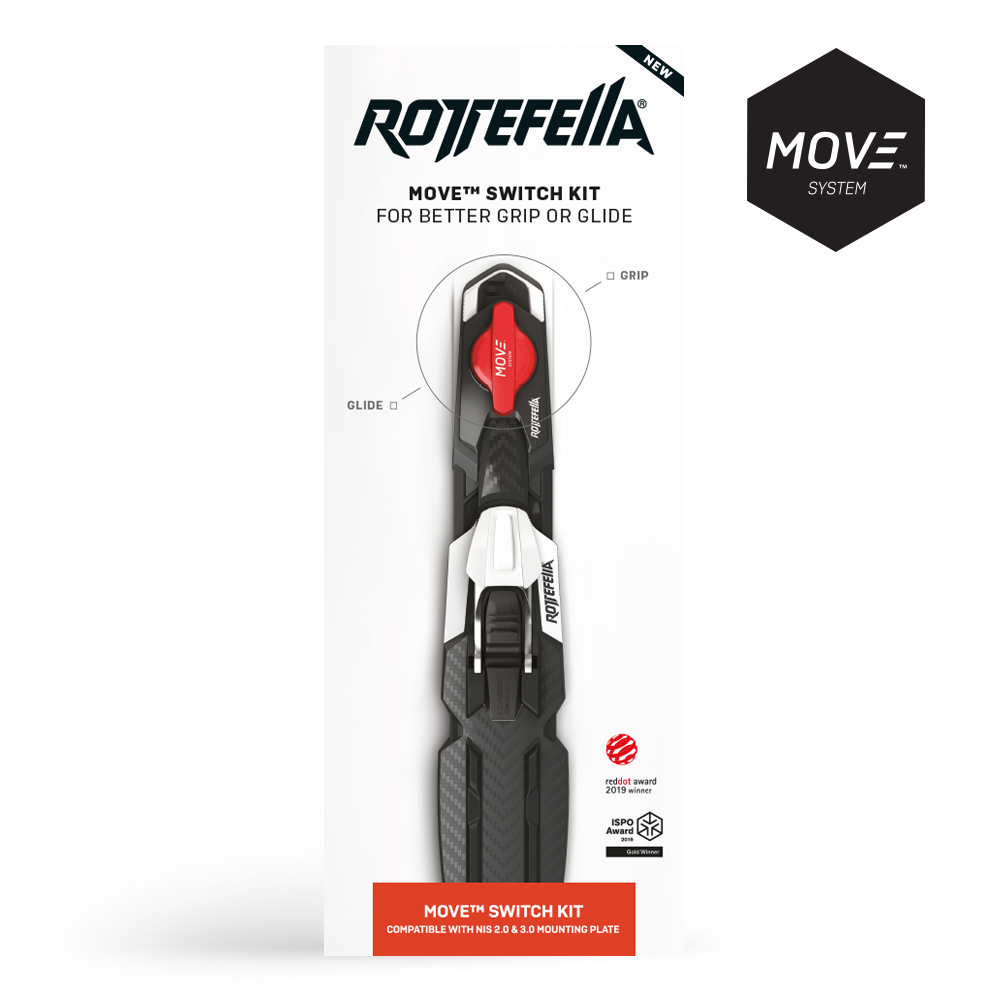 Комплектът Rottefella Move Switch KIT за NIS 2.0 & 3.0 осигурява подобрено сцепление и плъзгане само с едно завъртане на MOVE switch механизъма. Така премествате автоматите без нужда от сваляне на ските - само завъртате! С повече опит може да го правите и в движение. Преместете автоматите напред за по-здраво сцепление или назад за по-добро плъзгане. Перфектно решение за ваксирани ски или ски с колани. Системата Rottefella MOVE™ Switch е одобрена от FIS и може да се използва във всички състезания. Комплектът е съвместим с всички ски с NIS 2.0 или NIS 3.0 монтажна пластина.
